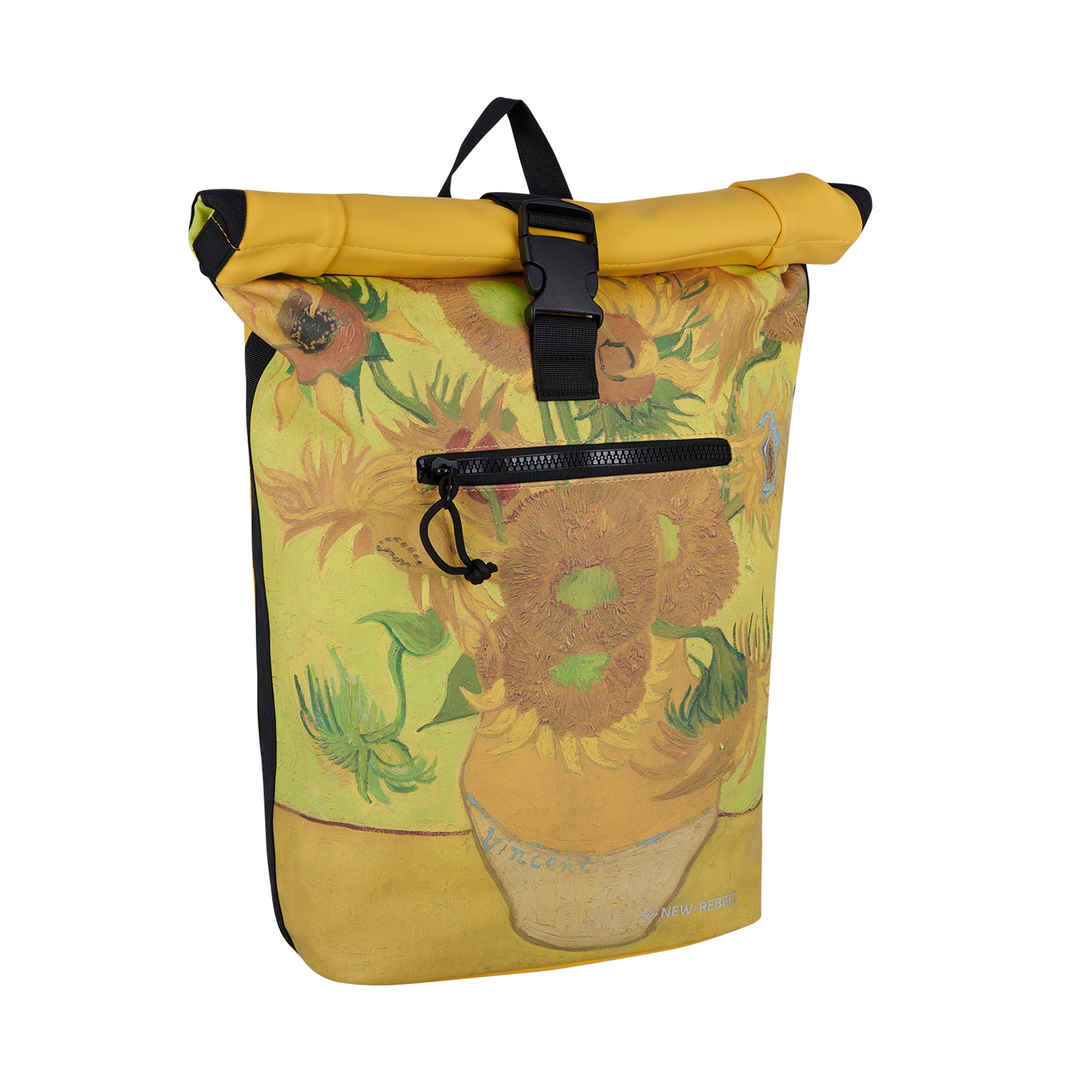 New Rebels Mart Art Roll Up Kurier Rucksack New York Milkmaid mit Joint rauchendem Milchmädchen und Cannabisblatt, wasserabweisend, Laptopfach